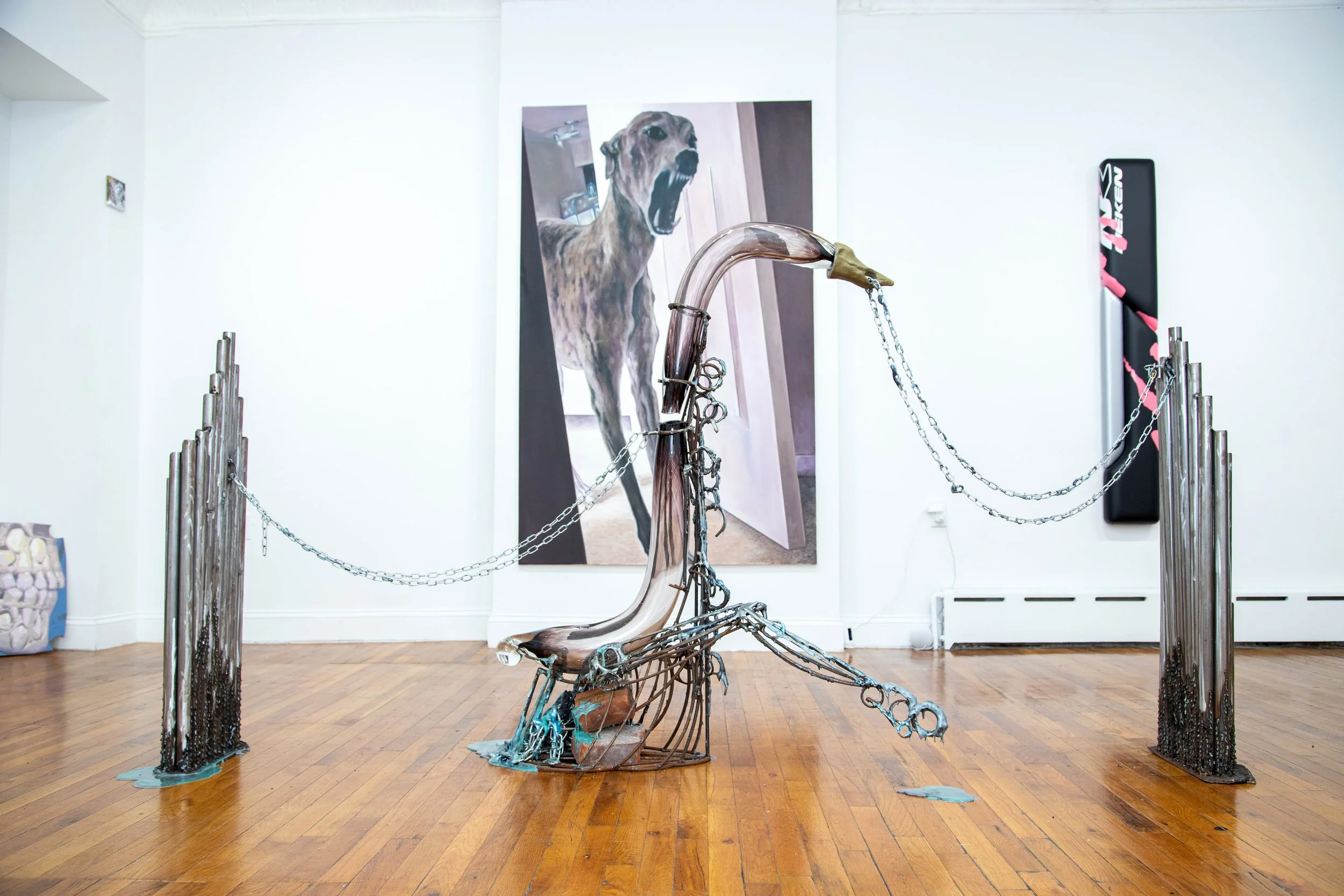 The work in “Direct Message” oscillates between painting, sculpture, and installation. From inception to actualization, the entire curatorial process relied on Instagram messaging and FaceTime studio visits. The curator did not see most of the works in person as an intentional measure. We will collectively witness how everything materializes in the physical realm.