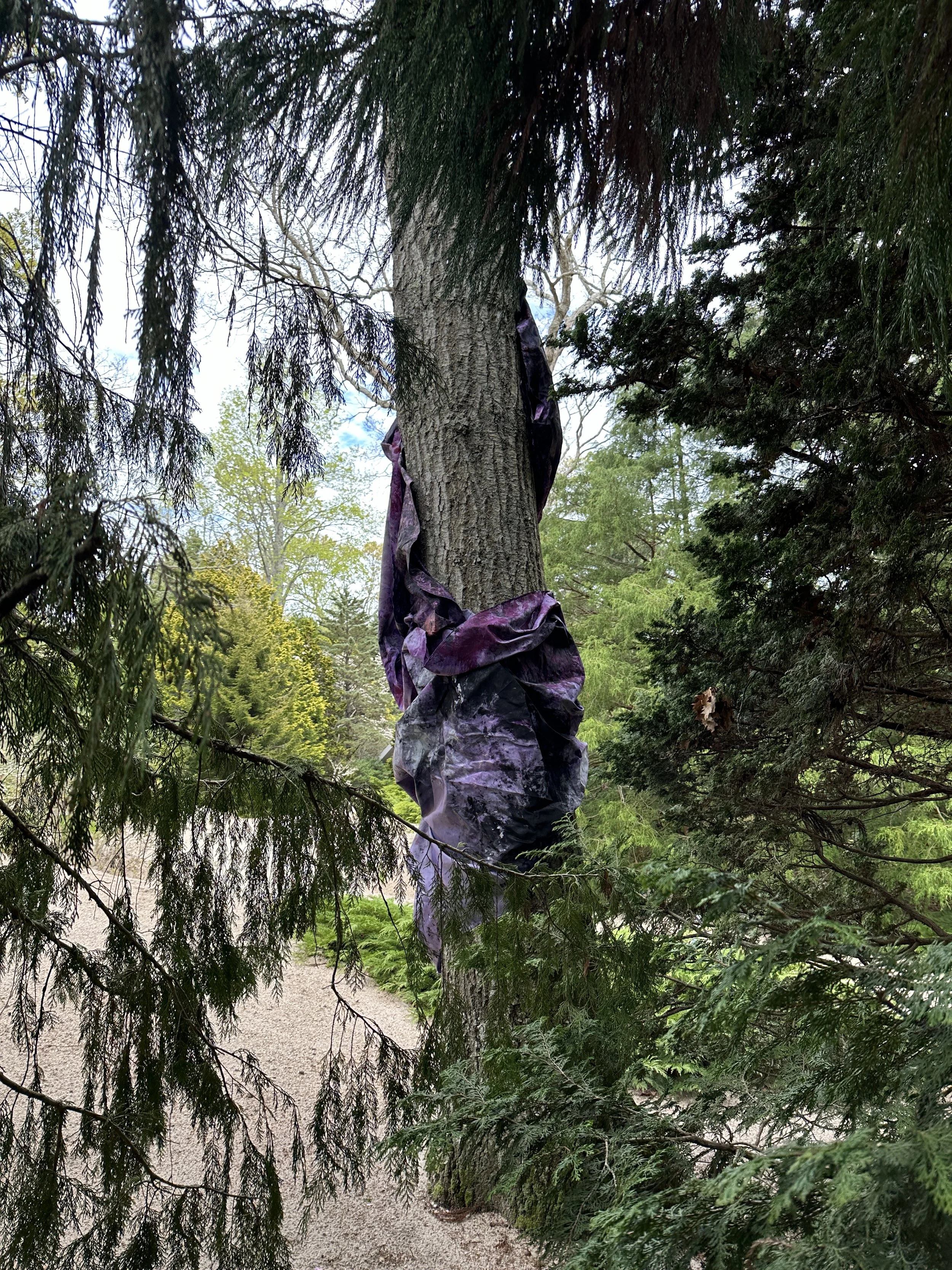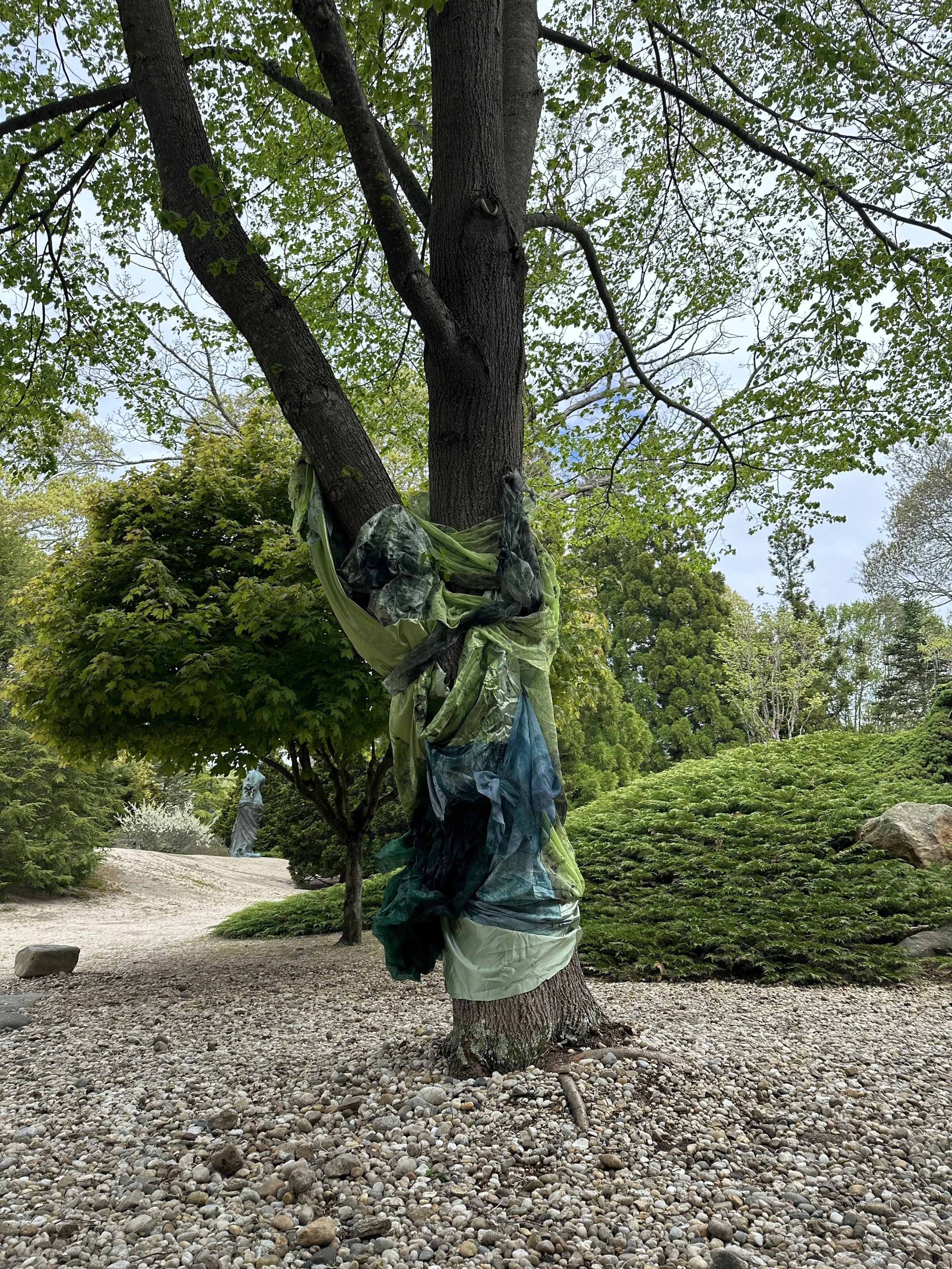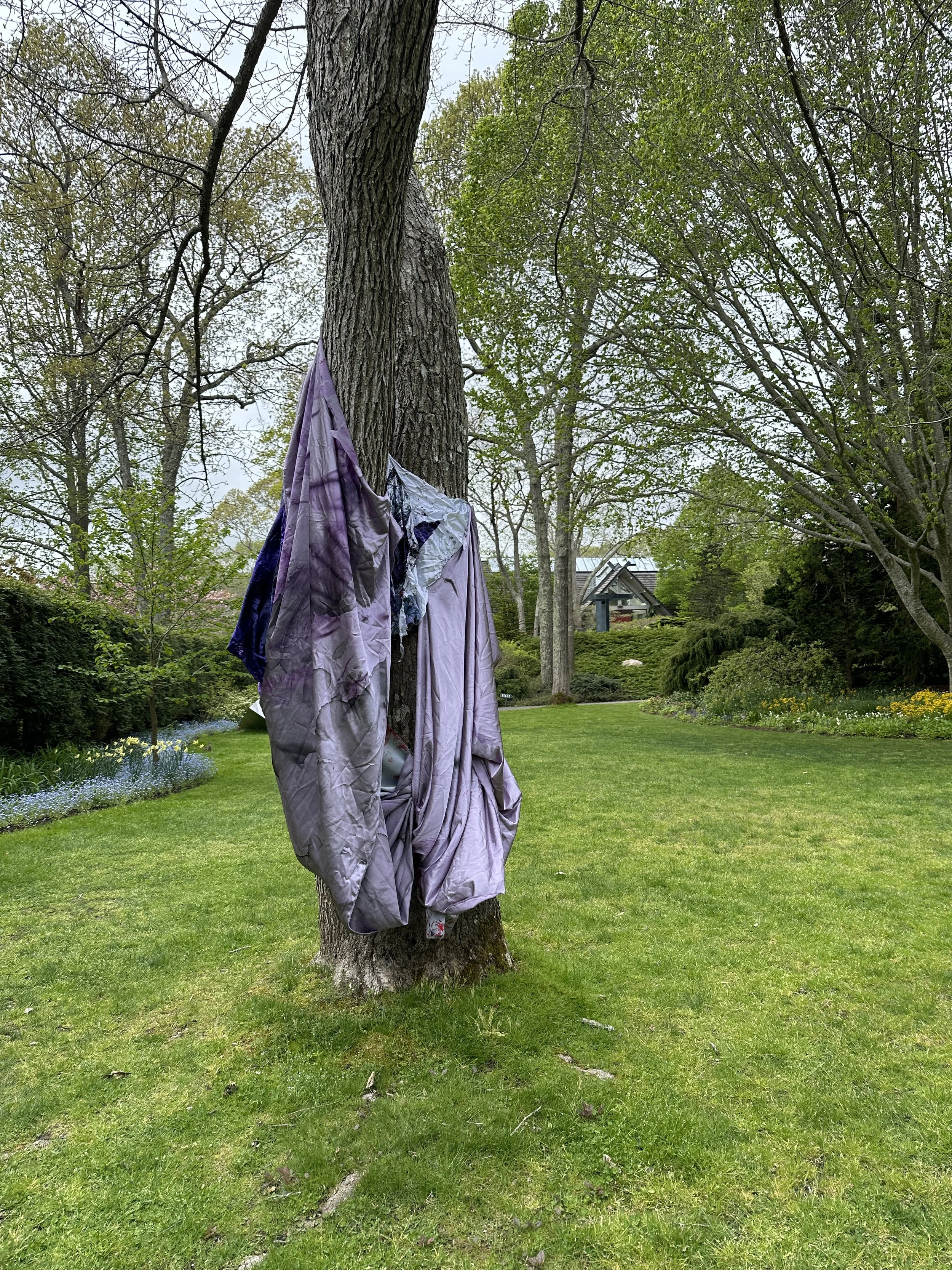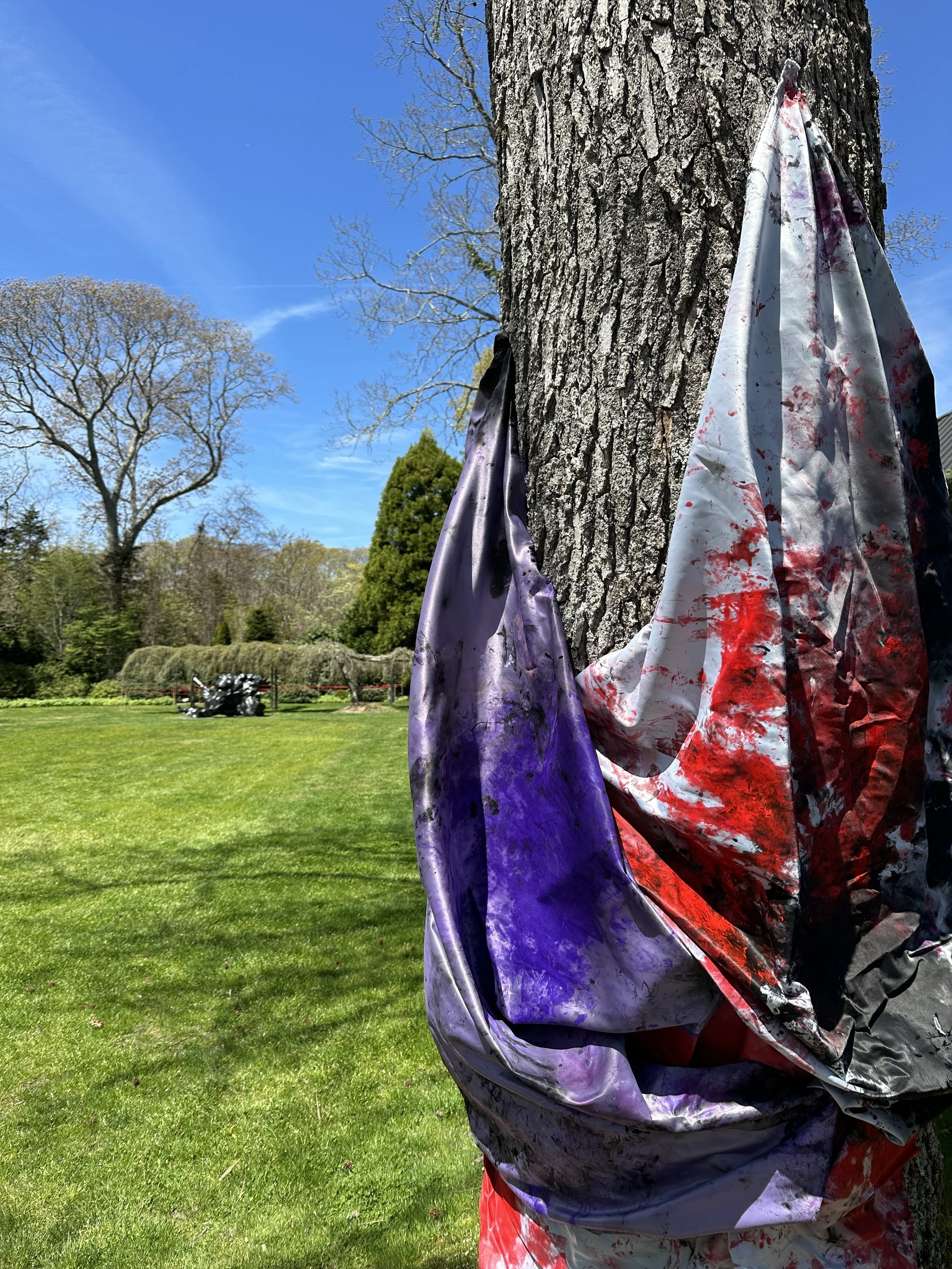 The sculpture installation, TREEHUGGERS, by emerging artist Preston Douglas Boyer is on view at LongHouse Reserve. The exhibition is comprised of two dimensional abstract paintings woven into the trees, thus becoming three dimensional "living sculptures," where art and nature become one. Preston's work intersects fine art, fashion, performance, technology, pop culture, and art history, both physically and conceptually. His work is visually and viscerally magical, and his practice embodies the visions of Jack Lenor Lawson, the founder of LongHouse Reserve, both having revolutionary spirits.