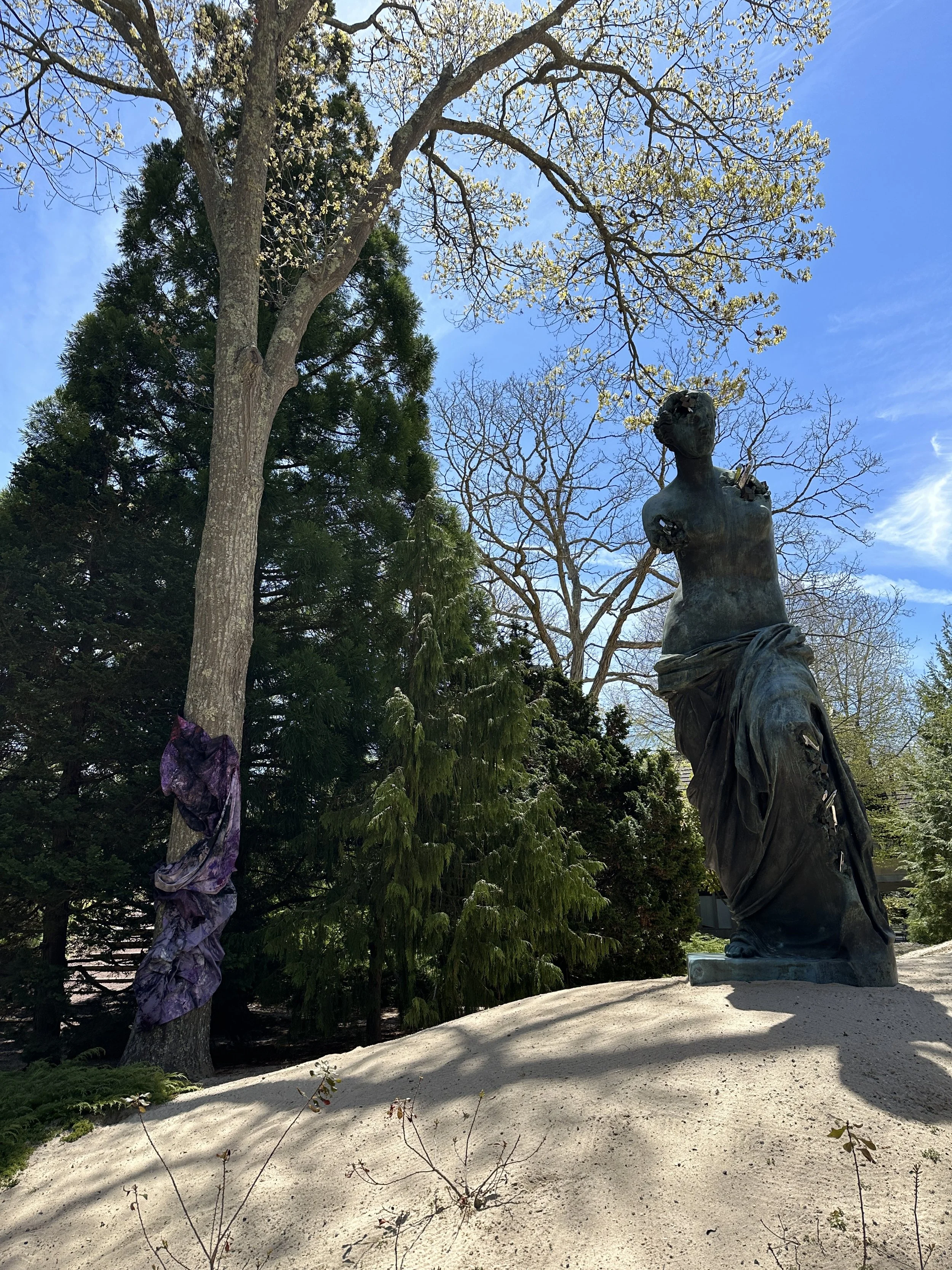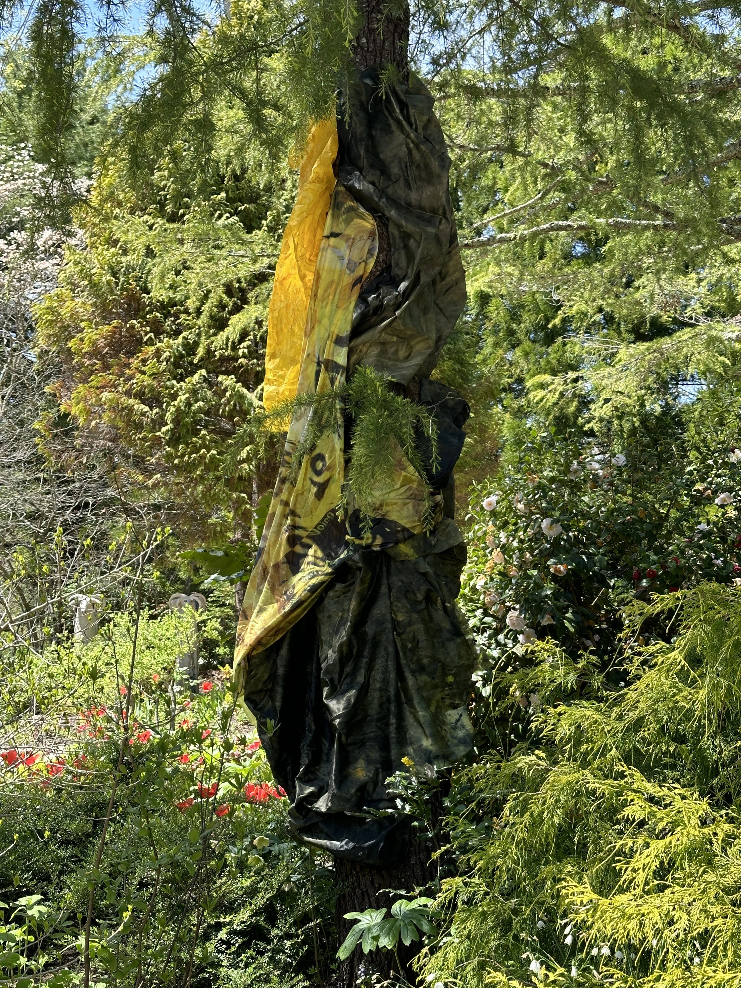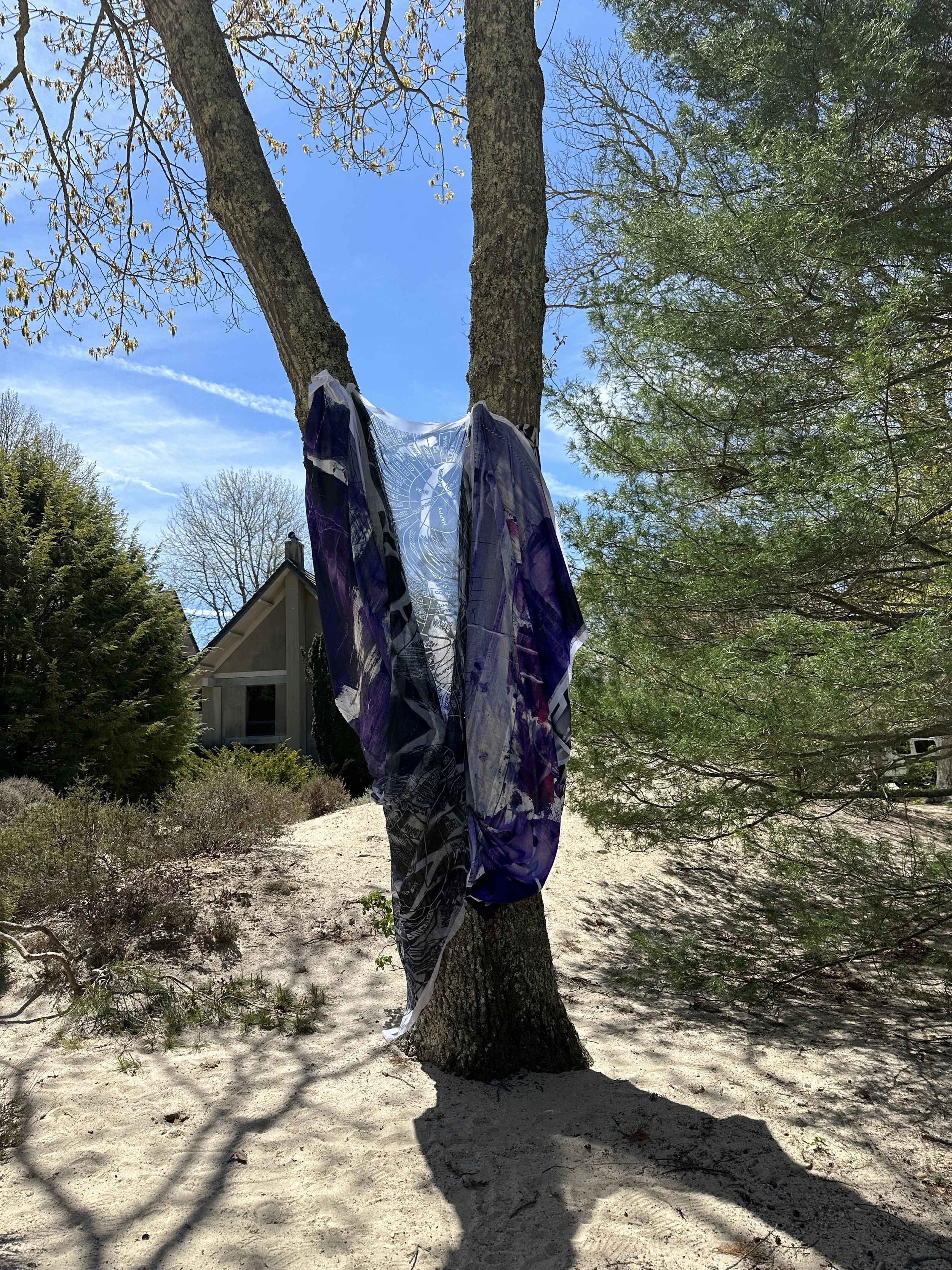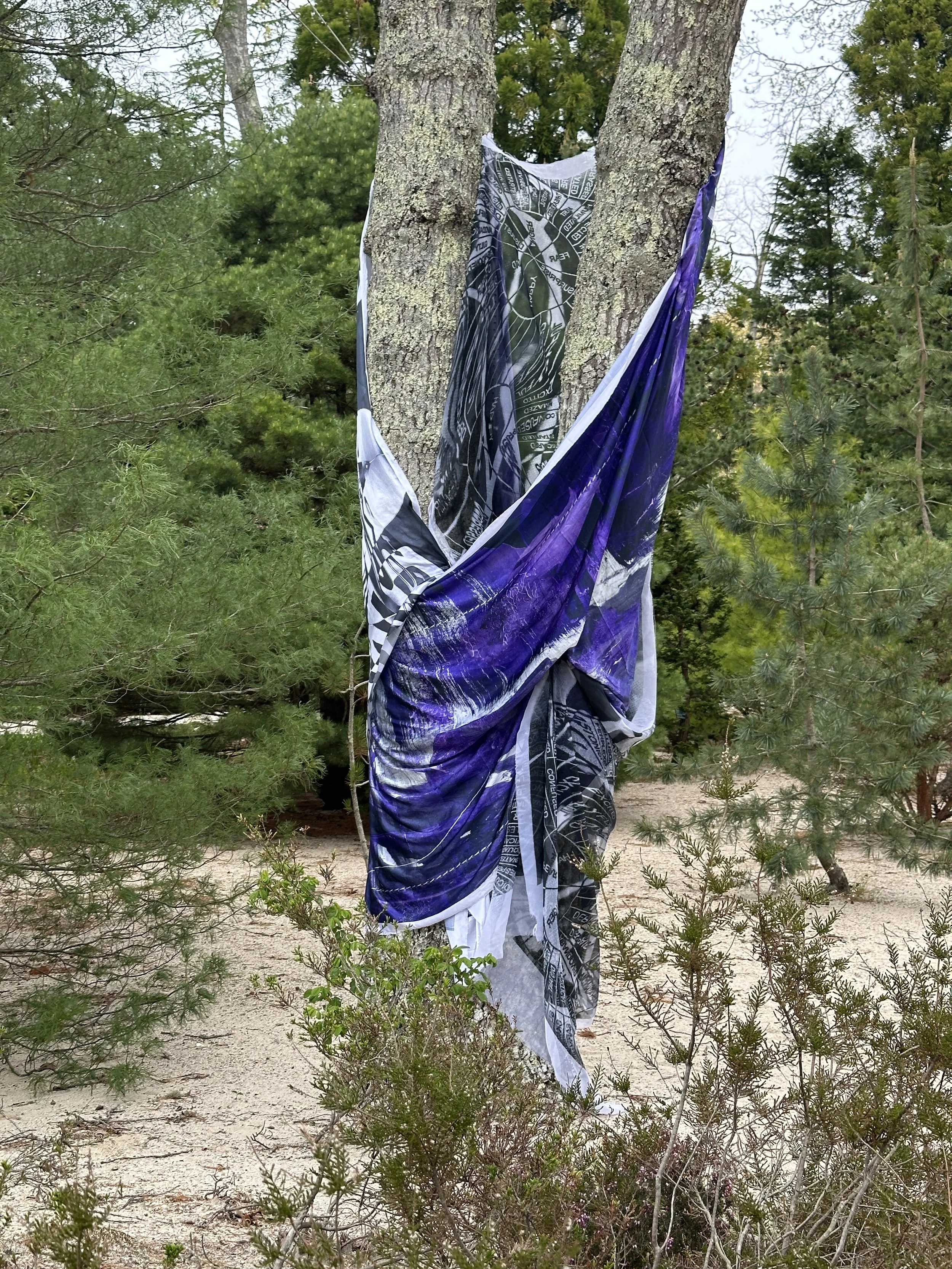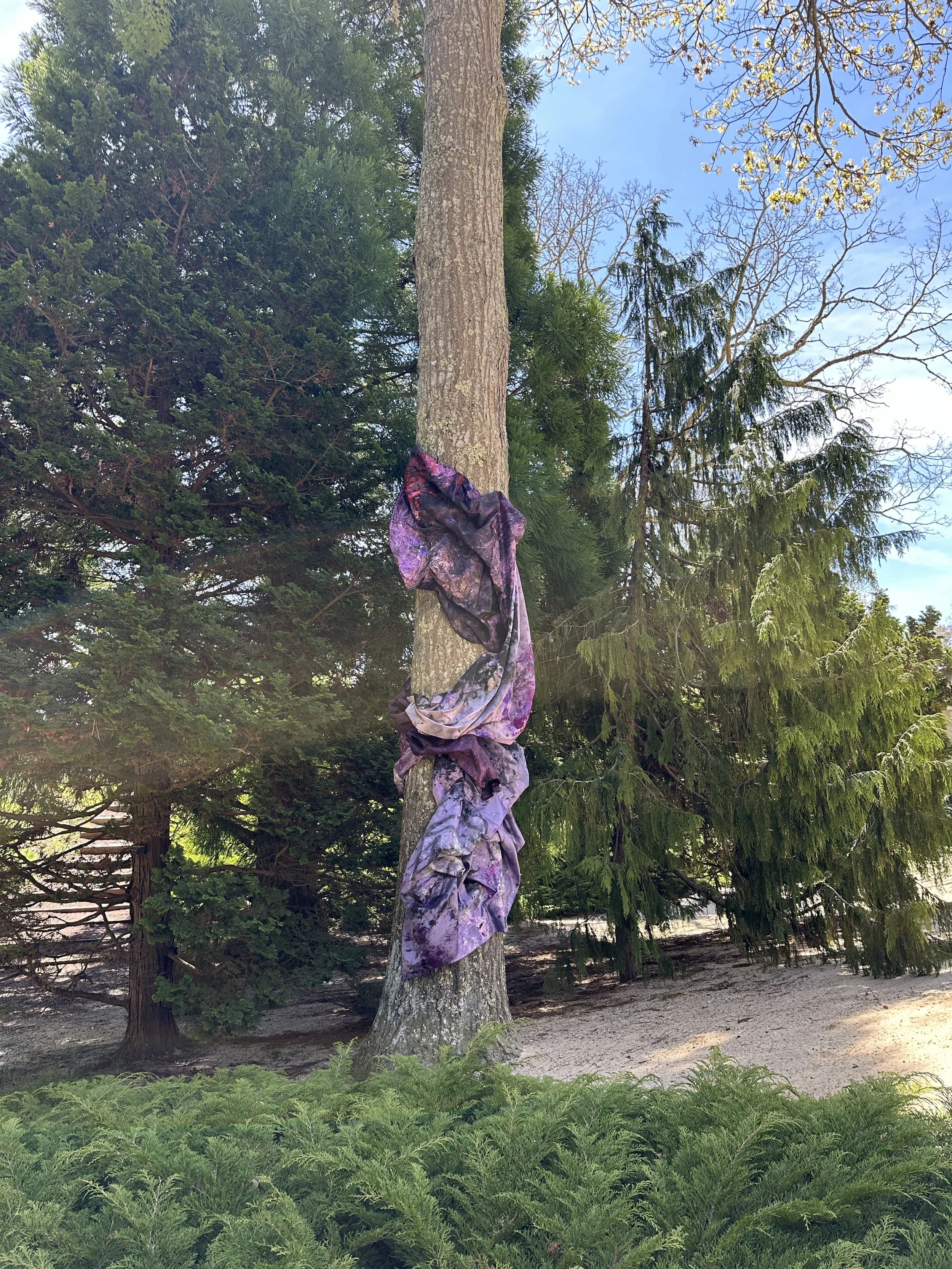 The sculpture installation, TREEHUGGERS, by emerging artist Preston Douglas Boyer is on view at LongHouse Reserve. The exhibition is comprised of two dimensional abstract paintings woven into the trees, thus becoming three dimensional "living sculptures," where art and nature become one. Preston's work intersects fine art, fashion, performance, technology, pop culture, and art history, both physically and conceptually. His work is visually and viscerally magical, and his practice embodies the visions of Jack Lenor Lawson, the founder of LongHouse Reserve, both having revolutionary spirits.
